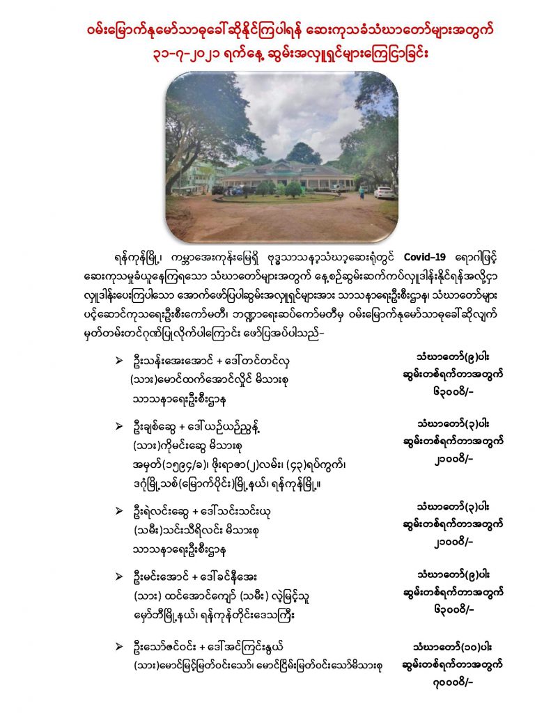 သတင်း ဝမ်းမြောက်နုမော်သာဓုခေါ်ဆိုနိုင်ကြပါရန် ဆေးကုသခံသံဃာတော်များအတွက် ၃၁-၇-၂၀၂၁ ရက်နေ့ ဆွမ်းအလှူရှင်များကြေငြာခြင်း Posted on September 8, 2021