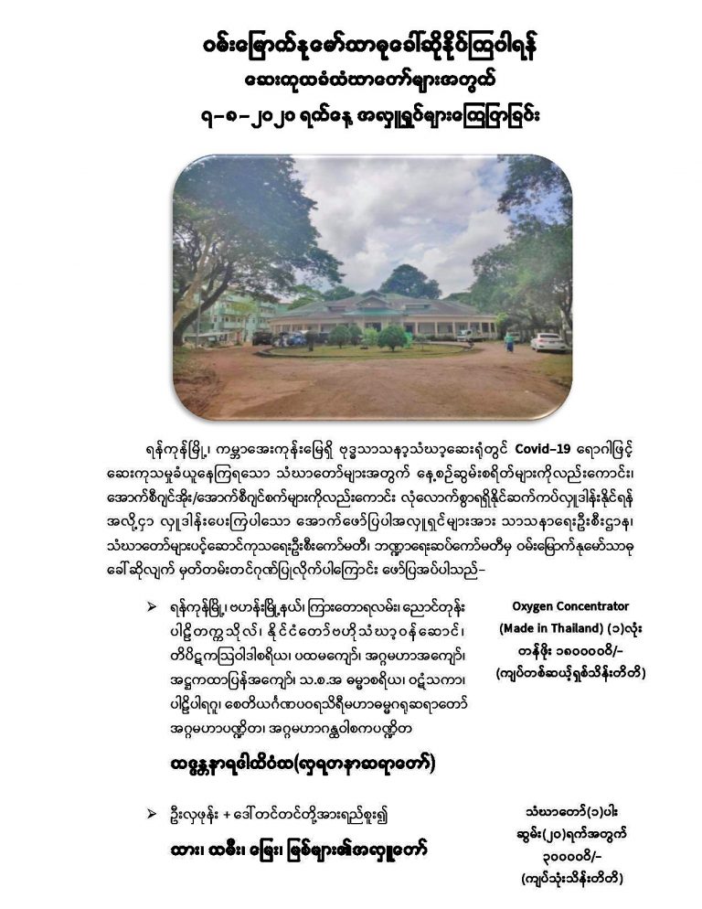 သတင်း ဝမ်းမြောက်နုမော်သာဓုခေါ်ဆိုနိုင်ကြပါရန် ဆေးကုသခံသံဃာတော်များအတွက် ၇-၈-၂၀၂၁ ရက်နေ့ အလှူရှင်များကြေငြာခြင်း Posted on September 8, 2021